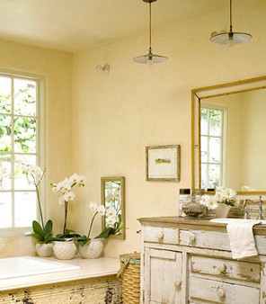 掉漆的浴室柜呈現(xiàn)出原始狀態(tài)的造型,卻正是它使鄉(xiāng)村風(fēng)格的衛(wèi)浴間拋開一切現(xiàn)代工業(yè)所帶來的束縛感,搭配藤質(zhì)的天然材料,帶給浴室一種溫馨舒適的感覺。