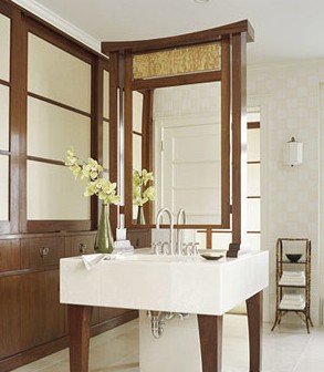 這類浴室柜的設(shè)計越來越接近家具的設(shè)計,從而更符合人們的使用習(xí)慣??Х壬炯y的浴室柜占據(jù)整個墻面,經(jīng)過特殊處理的材料既能防水,同時還具有良好的收納功能。
