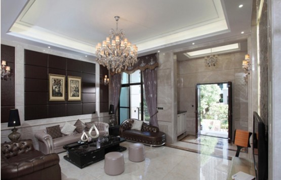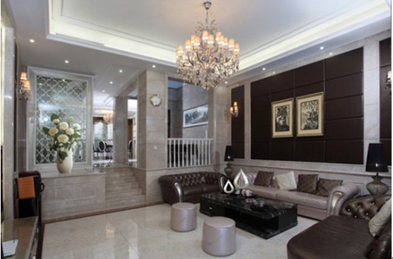 概要: 設(shè)計手法上主要采用新古典主義+歐式元素+現(xiàn)代元素,豪華中卻不見堆砌,整體上顯得奢華與貴氣,同時又體現(xiàn)時尚與優(yōu)雅,與業(yè)主的生活品味與審美訴求吻合?! 】蛷d:客廳空間,以米黃色與白色系為主色調(diào),這樣空間顯得干凈明亮,地面墻面使用具質(zhì)感的大理石,氣派、尊貴??蛷d背景墻則間以現(xiàn)代時尚的黑色軟包,配以相近色系的精美沙發(fā)與家具,顯得十分時尚、沉穩(wěn)。