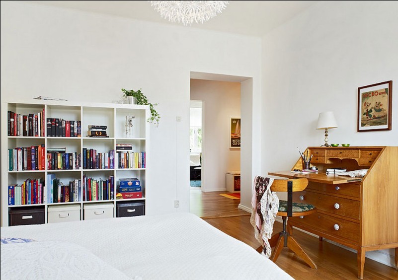 如果說餐廳客廳廚房都是現(xiàn)代感十足的現(xiàn)代歐式風(fēng)格,那么從臥室的各個(gè)細(xì)節(jié)又能看出不同。床另一頭的寫字臺(tái)旁搭配的椅子,帶有典型的20世紀(jì)50年代風(fēng)格。一點(diǎn)點(diǎn)典雅的風(fēng)格顯現(xiàn)。