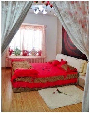 臥室裝修的簡(jiǎn)潔清新,紅色的床品讓人有種溫暖放松的感覺(jué)。造型甜美的飄窗在粉色的窗紗點(diǎn)綴下,格外的清新舒適,陽(yáng)光很好的情況下可以在此小息或看書(shū),獨(dú)有的一份享受時(shí)刻。