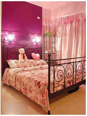 紫色的背景墻面在燈光的照耀下,呈現(xiàn)出的斑駁光影溫馨而別致,讓人的內(nèi)心感到平和而澄靜。整個(gè)房間都充滿(mǎn)了溫馨的感覺(jué),帶來(lái)的是另外一種親和味道。