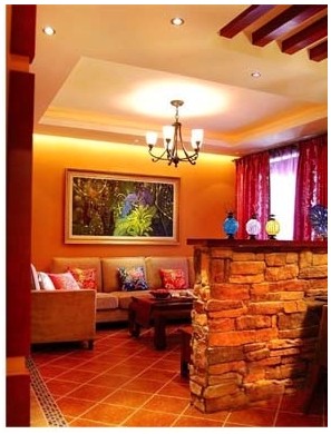 紅色有一種獨(dú)有的無(wú)法阻擋的魅力,無(wú)論是那個(gè)時(shí)候都顯得現(xiàn)代而時(shí)尚,熱情而溫暖。紅色的沙發(fā)是客廳的點(diǎn)睛之筆,而原木的圓弧形茶幾點(diǎn)上幾支蠟燭,在微弱的燈光下顯得浪漫而溫馨。