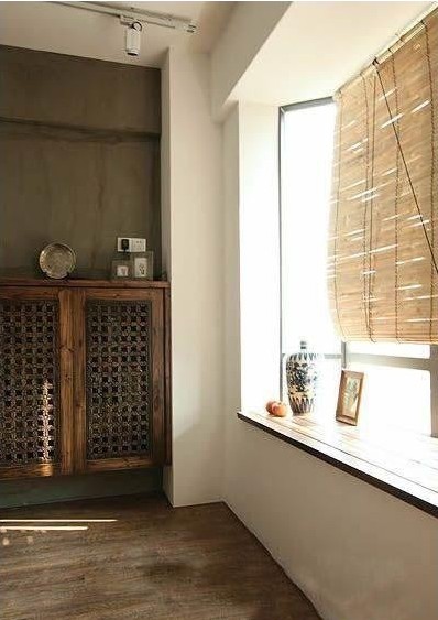 竹制窗簾,臥室用古典的壁柜,窗臺上擺放著青花瓷器,那一個竹制窗簾,是整個房間最有特色的地方。再配以原木地板,將整個空間的古典田園氣息顯現(xiàn)得淋漓盡至。