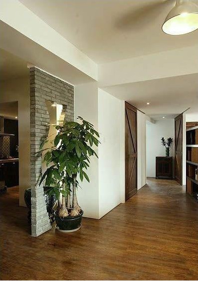 走廊里的綠植配飾配上磚砌墻面,墻外的那一點綠被搬到了房間里,是田園風的表現(xiàn)風格也達到了頂端。