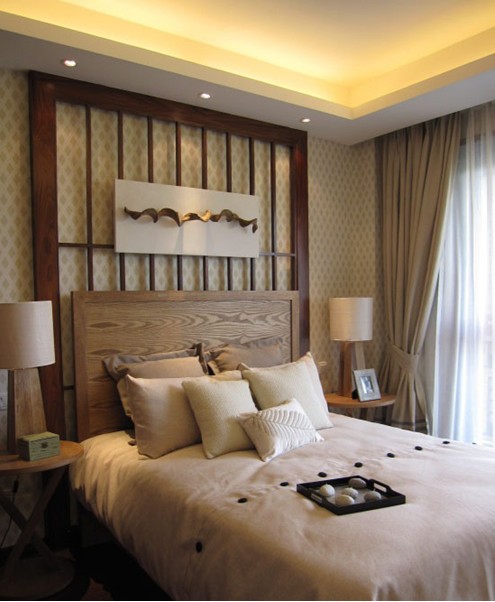 床背景縱橫線條簡單而韻味自出;簡單的加法而形成的整體卻富有表現(xiàn)力,或許這就是新中式風(fēng)格的魅力所在。