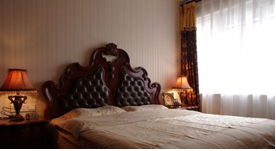 主臥床是古典的美式家具,頭層牛皮的高靠背配合精致手工雕花,體現(xiàn)主人對(duì)生活細(xì)節(jié)的追求。從臥室走到客廳,古典家具到現(xiàn)代氛圍,猶如穿越時(shí)光的電影情景再現(xiàn)。