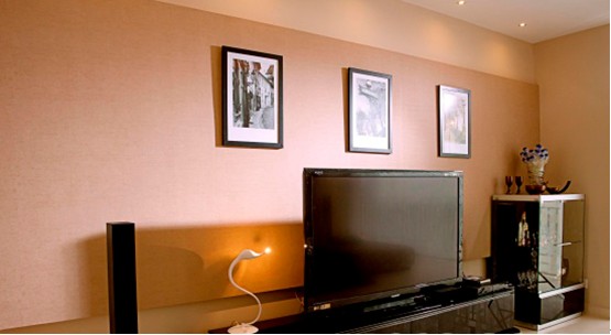 電視墻上的照片用數量的有序排列來達到美感,以簡單造意;