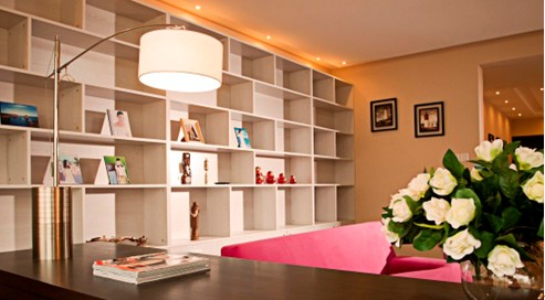 巨大的收納柜簡單經濟實用;2幅上下錯落的照片豐富了空間的動線;幽雅的花色透現主人不俗的欣賞品位
