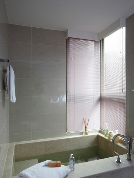 大理石堆砌的浴缸強(qiáng)調(diào)了實用與低調(diào)的主旋律;