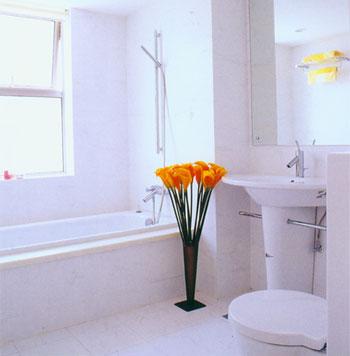 對(duì)于12平方米的浴室而言,其中可安裝按摩浴缸、多噴嘴沐浴房、自動(dòng)調(diào)溫水嘴、大面積的洗面化妝臺(tái),電動(dòng)吹風(fēng)器、剃須器、大型浴鏡、熱風(fēng)干手器和女用凈身器等設(shè)于其中,空間也綽綽有余。還可安裝恒溫通風(fēng)和通訊設(shè)施。此類衛(wèi)生間大體可分為開(kāi)放式布置和間隔式布置兩種,開(kāi)放式布置就是將浴室、座便器、洗臉盆等衛(wèi)生設(shè)備都安排在同一個(gè)空間里;而間隔式布置一般是將浴室、座便器納入一個(gè)空間,而讓洗漱或化妝區(qū)域獨(dú)立出來(lái),將一個(gè)空間進(jìn)行有機(jī)地劃分或重組。