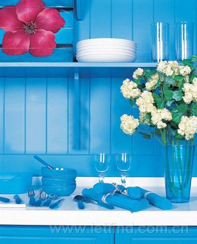 2、藍(lán)色的餐廚用具:營造唯美的廚房風(fēng)格