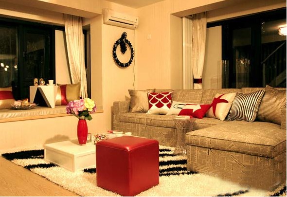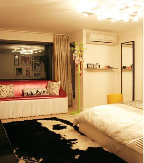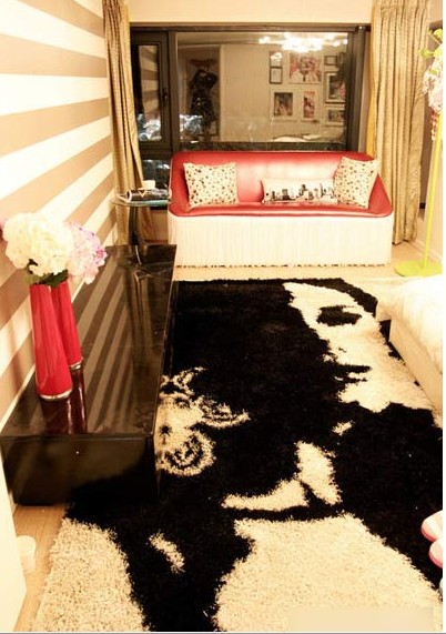 臥室地毯讓我眼前為之一亮,黑白搭的女人造型,時(shí)尚,前衛(wèi)又不是檔次。喜慶的沙發(fā)給這個(gè)角落到來(lái)來(lái)點(diǎn)**。