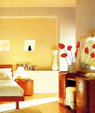 1、華麗以乳白色為主色,用之于墻面、天花板,地面用稍深的桔灰色,門窗采用接近的同類色,家具可采用鑲嵌有圖案的亮褐色,地毯、坐墊、飾品中點綴一些紅、桔紅、深紅、翠綠褐色。
