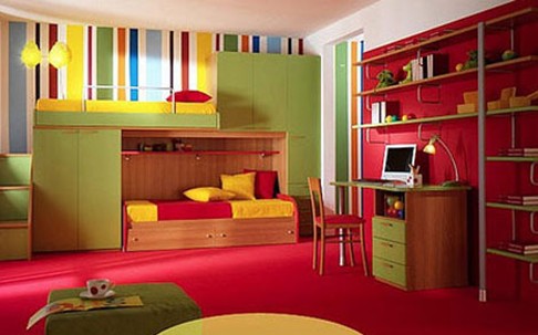 世界在小孩子的眼里是多姿多彩的,因為我們在設(shè)計兒童房時應(yīng)選用活潑的風(fēng)格或鮮艷的色彩。選擇五彩斑斕的色調(diào)打造兒童房,可以有效的刺激兒童的視覺神經(jīng),使兒童對形狀復(fù)雜、色彩鮮艷、有視覺深度的圖案感興趣,可很好的開發(fā)兒童們的大腦發(fā)育。
