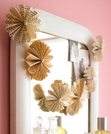 純白無色感的家具通常會和空間產(chǎn)生分歧,且相對單調(diào),把沒用的舊書本內(nèi)頁扎成一朵朵小花,隨意散落于鏡面上,讓原本單薄的家具有了體量,而周圍的其他家飾也讓空間顯得更加動感一些。