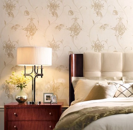 臥室團(tuán)花壁紙的底色非常重要,以米色、灰色等素色為主。