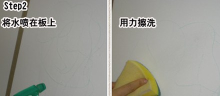 下面是測試此款油漆的耐擦力和抗污性,用蠟筆在涂料面板上圖畫后,然后用水噴灑在面板上,用力擦洗,很快筆畫部分被清洗干凈,不過由于蠟筆顏色比較鮮艷,也有可能會留有一點點痕跡。