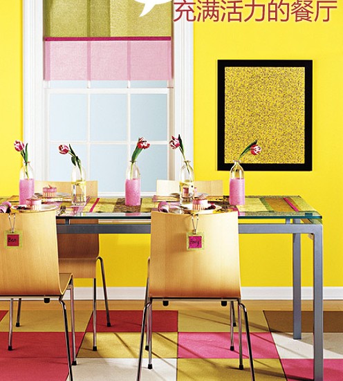 夏季居室背景可選明亮的色彩,能獲得醒目的室內(nèi)裝飾效果,又能營造極具親和力的視覺效果。室內(nèi)色彩我們自己主張,餐廳用了一抹的亮色配以淡淡的彩妝,便能描繪出一個清爽的夏季餐廳。