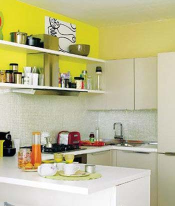 在墻面上設置擱板,則能起到更強的收納功能。像喝水的杯子,各種不銹鋼的小鍋,存放調(diào)味品的調(diào)料瓶,甚至可以放些相框、花瓶,只要喜歡,任何東西都可以放在上面。既省去其它的收納空間,又調(diào)節(jié)了枯燥的廚房空間。