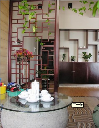 可采用高密度板、實木板等材料做成這種鏤空雕花或者中式門扇樣式的隔斷,可以到工廠定制,也可以憑業(yè)主喜歡的圖形DIY,或根據(jù)需求做成推拉形式或固定形式。由于是鏤空的,既不影響采光效果,也具備很好的通透性。