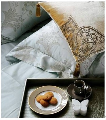 概要: 暖黃色枕頭搭配冰藍色床品,使涼意瞬間消失。在床上吃早餐,讓臥室氣氛多一份慵懶和隨意。古典床品可塑造出浪漫的法式風(fēng)格臥室,古典的床品款式多種多樣:暗色的花紋圖案、鄉(xiāng)村風(fēng)格碎花圖案或者純色花邊布料,但總的來說顏色應(yīng)該盡量雅致。暗色的花紋圖案床品與鄉(xiāng)村風(fēng)格碎花圖案都是較容易塑造出古典的氣息,而對于現(xiàn)代感的純色系,則盡量選擇古典風(fēng)格的配飾來搭配凸顯。