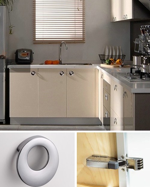 米色的木質(zhì)柜面清新淡雅,搭配白色的仿石柜面時尚之余不失清秀,圓環(huán)形的拉手不僅使我們使用更方便,也使方正的櫥柜增添幾分柔和。淺米色的柜面自然中帶點小溫馨,簡單干練的磨砂銀色拉手體現(xiàn)出現(xiàn)代的時尚風格,黑色的仿大理石柜面有股低調(diào)的奢華感覺,整個櫥柜清新又不失高雅。