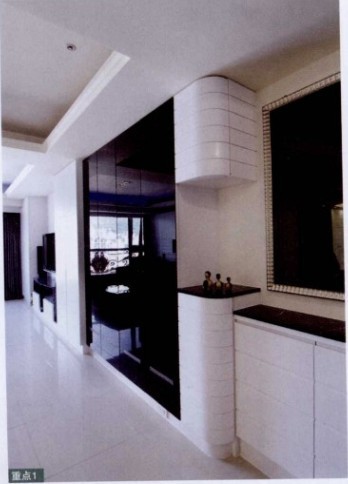 概要: 為了滿足戶主大量地收納物件需求,設(shè)計(jì)師沿壁面規(guī)劃了大量的隱藏式收納柜。以黑色與白色為空間主題,柜體以白色為主,輔以各種黑色建材,以提升空間質(zhì)感,而充滿前衛(wèi)感的黑色烤漆與黑色鏡面則帶來(lái)時(shí)尚感,展現(xiàn)出低調(diào)奢華的氛圍。此外,黑白之中并適度地穿插少時(shí)的銀色或透明色,如入門玄關(guān)鞋柜上的玄關(guān)穿衣鏡,配以造型利落的銀色鏡框,又如餐廳與廚房之間采用玻璃拉門區(qū)隔。
