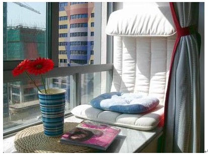 兩支鮮艷的花朵,舒適的靠墊,一本女性雜志,在午后溫暖的陽光中在此小息,欣賞著窗外景色,讓人忍不住忙里偷閑,好好享受一番。