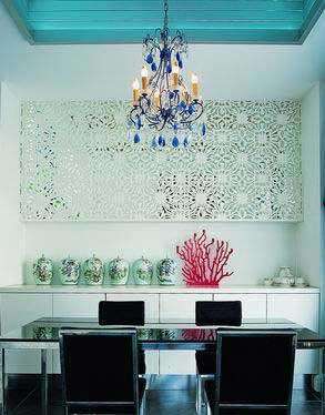 這面背景墻位于餐廳,同時(shí)也是客廳和餐廳的共有墻,在兩邊都能欣賞到它的美?;y和亮麗的顏色共同營造出伊斯蘭的華麗盛宴??蛷d背景墻的搭配方案里,燈飾的搭配同樣重要。很多時(shí)候,客廳的溫馨與浪漫就是通過這些小細(xì)節(jié)來體現(xiàn)的??梢哉f,現(xiàn)代客廳的裝修之美,在一定程度上是依靠光線修飾的。燈具早已不再是簡單的照明工具,而是家居裝飾和生活情調(diào)的一部分,它靈性十足的設(shè)計(jì)為整個(gè)居室增添了無限生機(jī)。