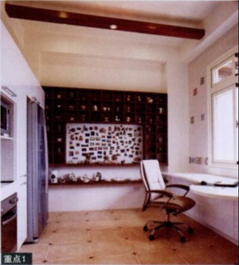 象牙白的空間,地上是復(fù)古磚,讓簡約的空間增添一絲質(zhì)感。廚房里最大的特色不是地面磚與空間色調(diào)的配合,而是廚房空間的墻面,設(shè)計師以集成材設(shè)計出格狀的馬克杯展示架,中間還有磁石板,可以貼上屋主收集的珍貴磁鐵。最搶眼的設(shè)計不是精致造型,而是實用到位的小道具,宜家宜居。