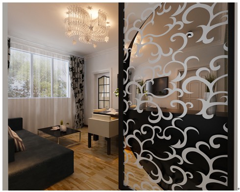 這個(gè)視角是本案例的一個(gè)重窗戶這個(gè)視角看整體布局的一個(gè)場景視角,主色調(diào)是黑白灰,因?yàn)槭乾F(xiàn)代風(fēng)格所以沒有比較的復(fù)雜的裝飾造型,墻頂面上是走的石膏角線,因?yàn)榉孔拥膶痈卟皇呛芨?,所以吊頂?huì)顯得比較的壓抑!沙發(fā)背景上的3副黑白掛畫在與白色的墻面的對(duì)比詮釋出黑白色調(diào)的搭配性,進(jìn)門的玄關(guān)及鞋柜藝術(shù)鏤空花格進(jìn)門的美觀性很強(qiáng),分開了走道及客餐廳的區(qū)域,使得空間規(guī)劃的更規(guī)范性,