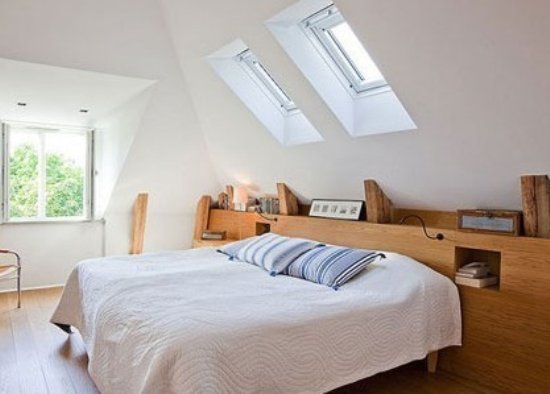 臥室依然純白的風格很是簡約。需在此一提的是臥室一側的墻頭很有設計感,利用原木制作了一排邊柜,既是有利的收納空間,同樣也是充當起睡床的床頭背板。床兩端的嵌入式的凹槽可以隨手放置鬧鐘,或者一些睡前會看的書。