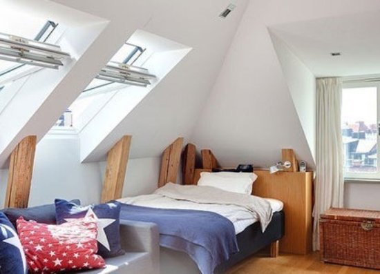 兒童房,藍色、紅色加白色的空間基調是典型的美國派裝修風格,而美國人骨子里那種自由隨性的生活態(tài)度正適合用于無拘無束的孩子身上;天窗下面放置一個沙發(fā),在漫天星斗的夜空下,蝸居在沙發(fā)里抱著吉他自彈自唱,成了自己施展技藝的空間。