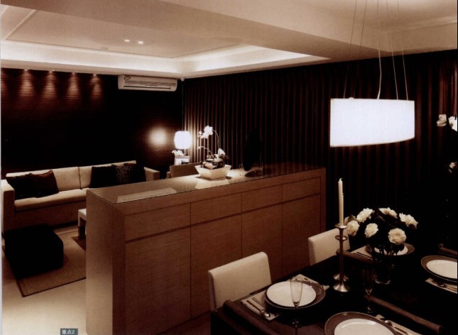 客廳與餐廳之間以矮柜為隔,坐在客廳沙發(fā)上看過去,矮柜則好擋住了餐桌,不會阻隔視線。而位于客、餐廳中間的矮柜,也具備了雙重功能,一喧是電視柜,另一邊則是餐柜。小柜子可以坐為臨時坐凳出現(xiàn),而里面則是格子空間,作為收納用。