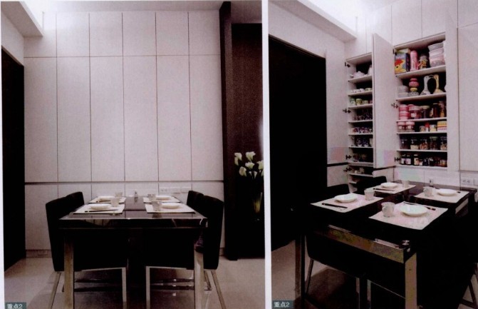 沒有把手的嵌入式柜體,創(chuàng)造出既安全又隱蔽的收納空間。柜體外觀上線條干凈不凌亂,內(nèi)部的收納空間又很實(shí)用。這類柜體門開關(guān)時(shí),注意老人孩子使用時(shí),切勿夾到手。家具的五金鎖件也時(shí)尚注意保養(yǎng),以免摩擦降低使用率。