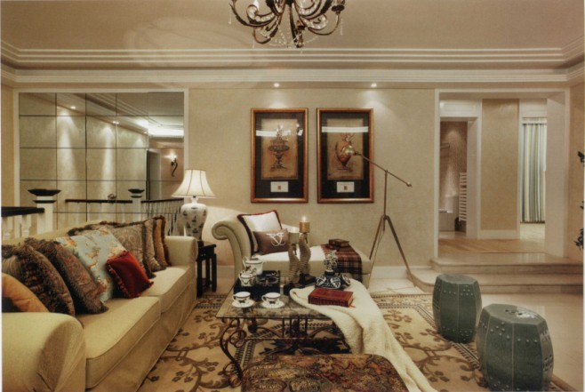 本案的設(shè)計師選用天然材料,用簡潔、明晰的線條進(jìn)行裝飾,與穿金戴銀、色彩夸張的歐式風(fēng)格家居相比,該風(fēng)格更具親和力,向人們傳遞了一種自然而純粹的美,體現(xiàn)了人們對舒適、寧靜生活的向往。沙發(fā)的色調(diào)古樸而典雅,以溫暖柔和的色彩為主色調(diào)。其造型端莊凝重,設(shè)計大氣磅礴,坐感舒適,流露出溫馨、浪漫和時尚感。在美式風(fēng)格家居中,文化和歷史的包容性是一大特點,可以在本案的設(shè)計中看到中式元素的影子。大氣、經(jīng)典,細(xì)節(jié)精雕細(xì)琢,都是美式休閑風(fēng)格的表達(dá)。松軟的坐墊與靠背,可隨意搭配的抱枕,再配上傳統(tǒng)美式涂裝效果的雕飾線條,讓人感受到恬靜典雅、休閑舒適的居室氛圍,其成為了現(xiàn)代人追求高品質(zhì)生活的首選。
