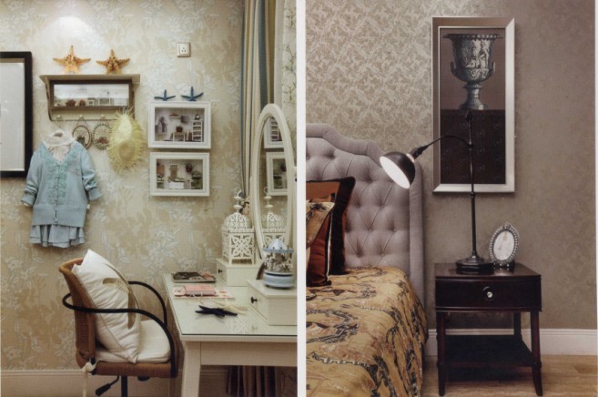 本案中的軟裝頗為豐富,各種象征業(yè)主過去生活經(jīng)歷的陳設(shè)一應(yīng)俱全,被翻開的書籍、顏色發(fā)黃的舊皮箱、草帽、油畫、海星……即使是裝飾品,這些東西也足以為書房的美式風(fēng)格加分。