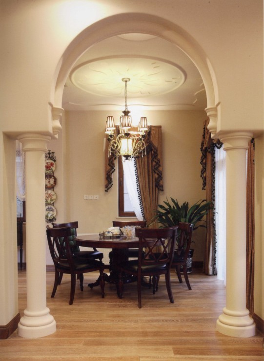 概要: 本案的住宅類型為獨棟別墅,業(yè)主為40歲左右的事業(yè)有成、具有較強經(jīng)濟實力的女強人,生活質量較高,喜歡交際;服飾考究;喜愛歐式風格的莊重、典雅,尤其是對西班牙風格情有獨鐘。 設計思想:通過大氣的圓拱造型、精致的雕花圖案、色彩濃郁的布藝、墻面高純度涂料、地面的各種材質拼貼、復古的吊燈、粗獷大氣的家具等的搭配,歐式與阿位伯風格得到了完美的融合,構成磅礴大氣、不失品位的家居環(huán)境。