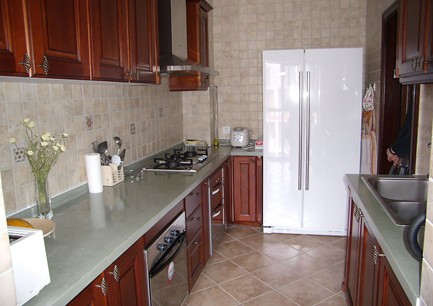 6.廚房宜采用歐式櫥柜,歐式櫥柜能整齊地收納廚房雜物,使廚房容易保持清潔,櫥柜以淺色或冷色系為佳,在烹飪時使人容易保持輕松愉快的心情。