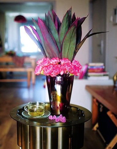 客廳、樓梯旁、拐角處和走廊。香石竹的生命力很頑強(qiáng),朱蕉也可以適應(yīng)不同的環(huán)境,因此這組題材可以擺放在任何你喜歡的地方。