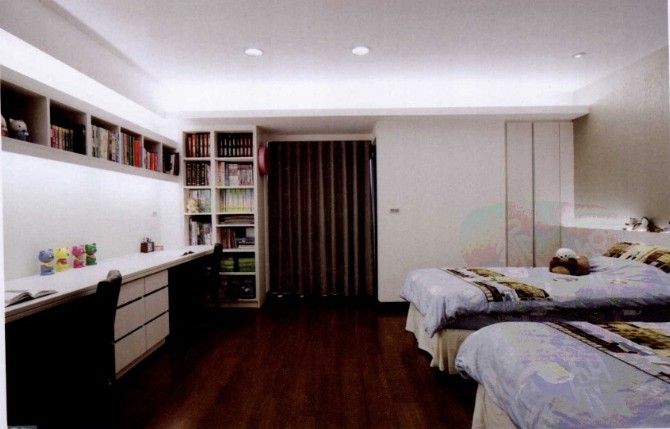 概要: 本案中的業(yè)主有兩個正在讀小學(xué)的孩子,業(yè)主在家居設(shè)計時,除了風(fēng)格的營造外,功能相對重要。設(shè)計師讓色彩單純化,把設(shè)計重點(diǎn)放在收納功能上。兩個女孩,設(shè)計師以一間大的小孩房讓兩個女孩共同生活,擴(kuò)大生活空間的同時,也增加了收納面積,為小女孩打造高效率的收納空間 兩個女兒正是讀書階段,因此女兒房的閱讀空間的打造相對重要,而收納則以書籍為主,利用書桌吊柜上下空間及延伸的落地書柜收納書籍,使空間整潔、利落,也讓小孩讀書更有效率。