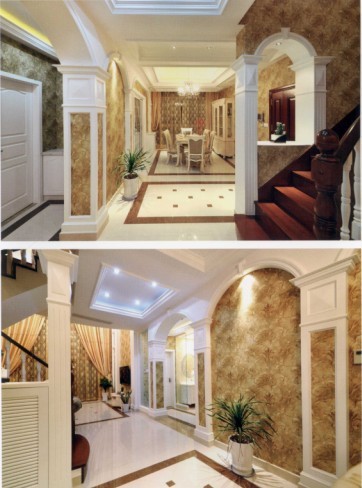 本案將裝飾藝術(shù)派的風(fēng)格和后古典主義完美地融合在一起,以米色為基調(diào),用白色來打造做工精致的細部,并適度地運用光線引導(dǎo)空間流線,并一搭配具有新古典風(fēng)格的家具,從而共同營造出具有高貴氣質(zhì)的居室空間,進而使人擁有出現(xiàn)代奢華空間之中的感受。