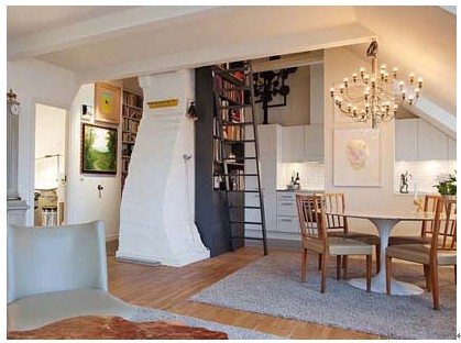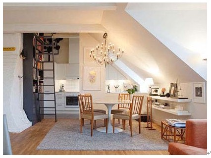空間不大的小家里融合了極簡風(fēng)格的設(shè)計(jì),將廚房、餐廳和閱讀角打造于一體。通天的書架劃分出物質(zhì)和精神食量兩大區(qū),家具深淺色調(diào)的變化為白色空間帶來一絲新意!整體看起來很溫馨!