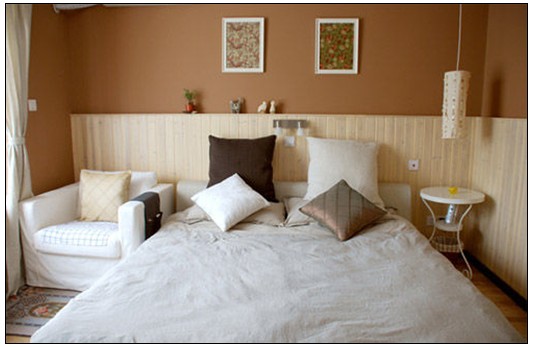 動(dòng)用較深、較暗的顏色,那樣可能會(huì)使空間更壓抑。可選擇淺色調(diào)、中間色作為家具及床罩、沙發(fā)、窗簾的基調(diào)。這些色彩具有擴(kuò)散和后退性,能使居室呈現(xiàn)清新開(kāi)朗、明亮寬敞的感受。