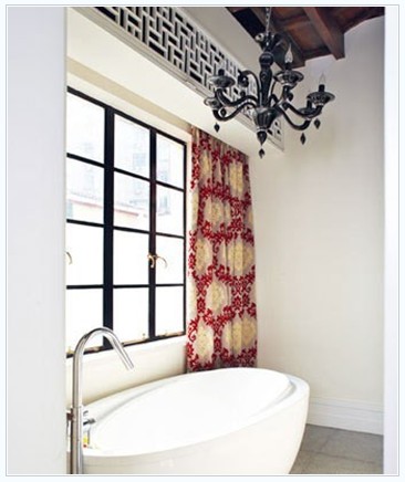 浴室是三樓主人房最有特點的地方,白色的主調(diào)讓空間顯得純潔干凈,厚重的窗簾帶著華麗的花紋為其帶來濃墨重彩的一筆。