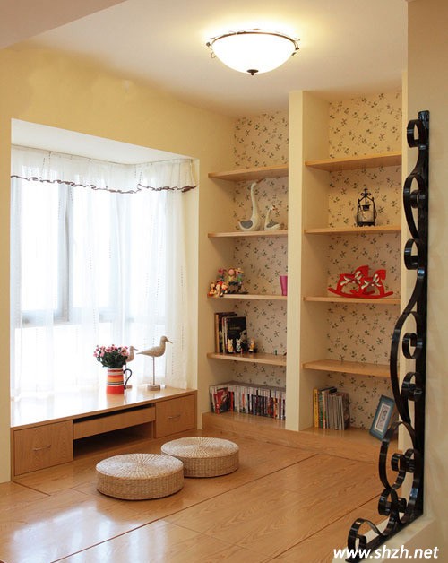 在中小戶型里,將某間房間設(shè)計(jì)成榻榻米形式,可以說(shuō)是最能節(jié)省空間、擴(kuò)大房間功能的方法。制作榻榻米房間時(shí),可將房間地面抬高,做在房間里面,中國(guó)的榻榻米下面是可以打開(kāi)放東西的柜子,中間還有個(gè)升降桌,圍著升降桌坐的時(shí)侯,根本不需要盤腿,腿是可以放下去的,跟平時(shí)坐凳子差不多。并在地臺(tái)內(nèi)設(shè)計(jì)若干個(gè)上拉門式或側(cè)拉門式儲(chǔ)物柜,可存放大量的被褥及其他雜物,節(jié)省出許多儲(chǔ)物空間;同時(shí),榻榻米可以承擔(dān)品茶、聊天、休閑、閱讀、睡眠等多種功能,特別是對(duì)于中小戶型業(yè)主來(lái)說(shuō),具有極為強(qiáng)大的“夜間親朋留宿”的功用。