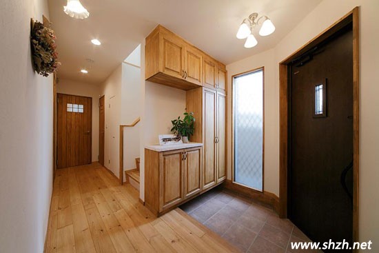 玄關(guān)處,木色地磚和木色地盤協(xié)調(diào)過(guò)度,將室內(nèi)和室外自然區(qū)分開來(lái)。木板打造的柜子,貫穿正面墻壁,增加了整體的收納型。鞋柜上方,白色的相框,裝飾全家福,家的溫馨蔓延整個(gè)空間。綠色植物給玄關(guān)帶來(lái)了自然的氣息,而墻壁上的風(fēng)干花,四季如春的色彩,更給玄關(guān)增添了春的氣息,使我們的生活更加清新淡雅,悠然自得。