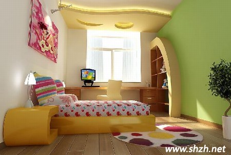 兒童房因為其特殊的功能,所以在布局方面除了要避免成人臥室所遇到的問題,如床下不可擺放橫梁之下,不可床頭靠窗等,另外兒童房亦要遠(yuǎn)廚廁,以免受油煙、污穢之氣的干擾,更不應(yīng)有穿堂風(fēng)使孩子易于著涼感冒。兒童房需要空間,不可裝潢太復(fù)雜,家具也不宜太龐大,使房間無阻塞與局促之感。