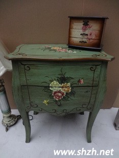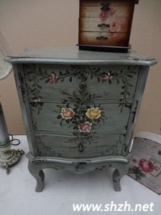 田園手繪風(fēng)的法式鄉(xiāng)村家具,左側(cè)可做床頭柜、收納柜或者餐邊柜;右側(cè)同款可做餐邊柜 玄關(guān)柜 三斗柜。墨綠底色搭配古典花朵,讓你的春日多出一份曼妙的歐式情節(jié)。